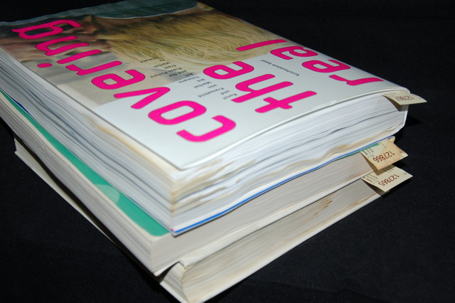 Hochglanzpapierseiten kleben zusammen und machen aus einem Kunstbuch einen kompakten Klotz.