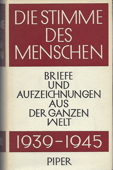 Bähr, Hans Walter [Hrsg.], Die Stimme des Menschen. Briefe und Aufzeichnungen aus der ganzen Welt 1939-1945. 23.-34. Tausend. München: Piper, 1966. 600 Seiten. Leinen mit Schutzumschlag. * Ungekürzte Sonderausgabe.