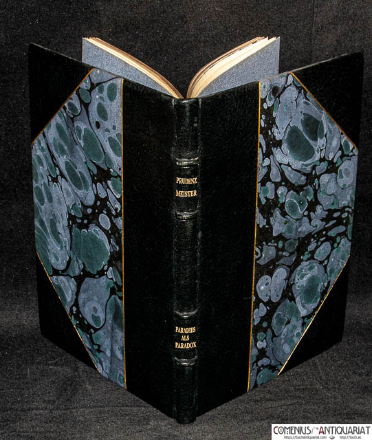 | Meister, Prudenz, Paradies als Paradox. Berlin: Duncker, 1905. 48 Seiten. Dunkelgrüner Leinenband der Zeit mit Gold- und Blindprägung. * Poesie in der Zeitenwende; 3. - Der schmale Lyrikband des verkannten und vergessenen Berner Dichters, Romanciers, Seefahrers und Städteplaners Prudenz Meister (1875 - ca. 1923) entstand im Wesentlichen bei seinem letzten Besuch in seiner Heimatstadt im Jahre 1904 und sorgte für einiges Aufsehen. Das Werk kann als Vorläufer des Dadaismus bezeichnet werden; Prudenz' "Linguisimultanie-Poesie" fand mit "Traktor und Meteor" (1917) ihre Vollendung. Vgl. Pedro Lenz, Das kleine Lexikon der Provinzliteratur (Zürich 2005), S. 67ff. - Unverkäuflich. - Einbandkanten leicht berieben, vereinzelte Stockflecken. Meister Prudenz | Helvetica | Schweiz | Bernensia | Mundart | Baernduetsch | Lyrik | Gedichte | Poesie | |